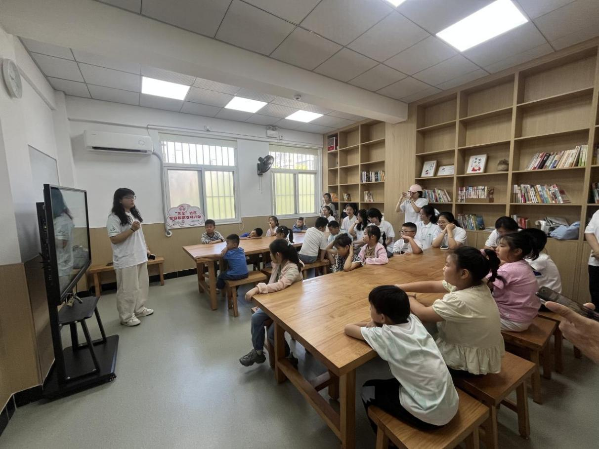 活动伊始,心阅文明志愿服务队的大学生向孩子们分享自己成长过程中受益匪浅的书籍,《夏洛的网》用童话的叙事风格表现出一份对生命本身的赞美与眷恋;《了不起的狐狸爸爸》以家庭作为主题,独特的叙事风格,透着作者一股独立和放荡不羁的作风;《安徒生童话》爱憎分明,热情歌颂劳动人民,赞美他们善良和纯洁的优秀品德。小朋友们聚精会神,沉浸在优秀书籍的魅力中。