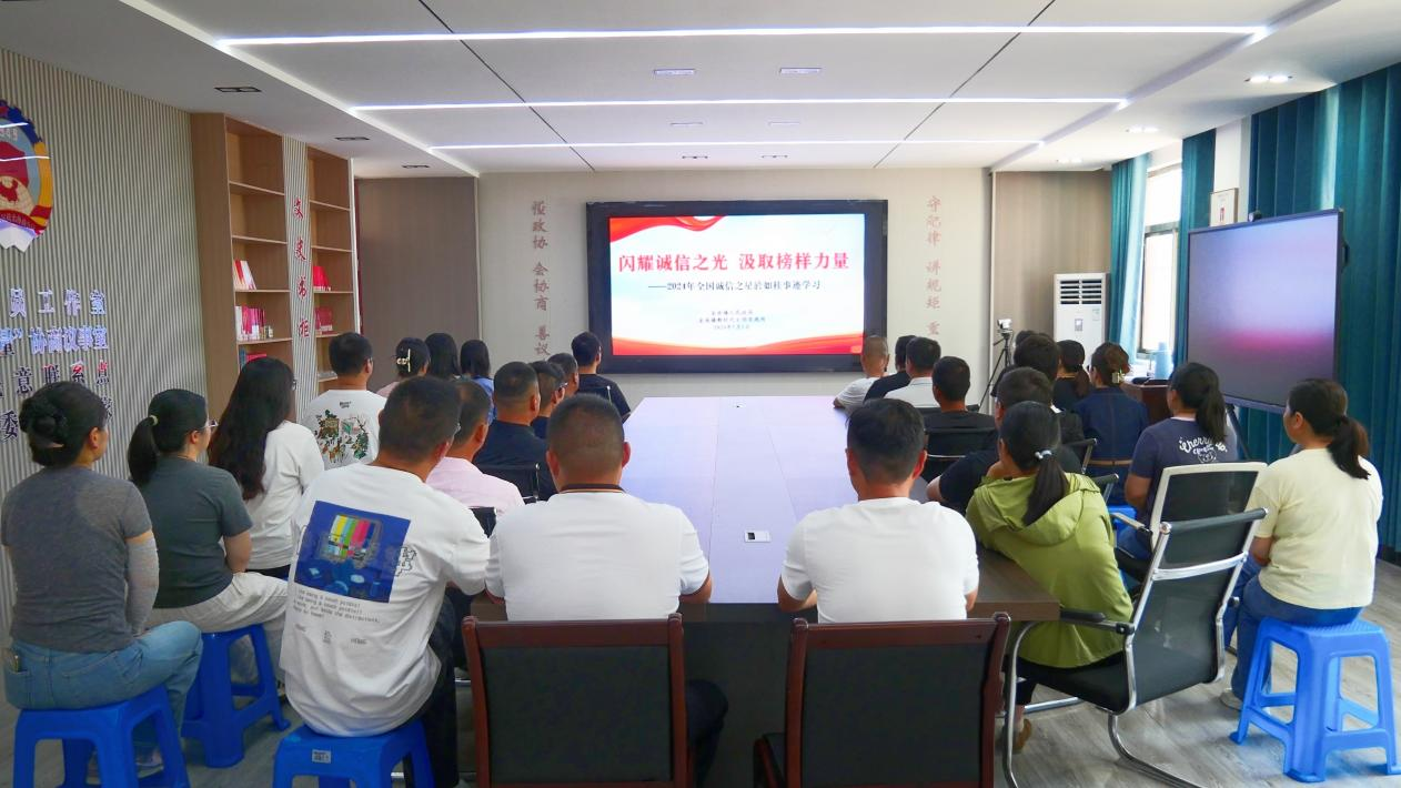 弘扬诚信文化,推进诚信建设。7月3日,金南镇精心组织开展“闪耀诚信之光 汲取榜样力量”——学习2024年全国“诚信之星”於如桂同志先进事?;疃?。各村(居)民兵连长、退役军人党员代表以及青年干部代表参加活动,共同见证家乡骄傲,感悟诚信力量。