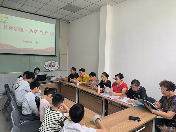 在第十五届江苏书展火热开展之际,为深化全民阅读理念,构建书香社区文化生态,长西街道引河社区于7月3日以“书香邻里·共享'悦'读”为主题,组织了一场跨代际阅读互动活动。在社区新时代文明实践站里,社区的阅读爱好者、青少年及居民代表欢聚一堂,通过经典朗诵、好书分享、互动点评等形式,让书香浸润邻里情谊,以阅读点亮成长之路。